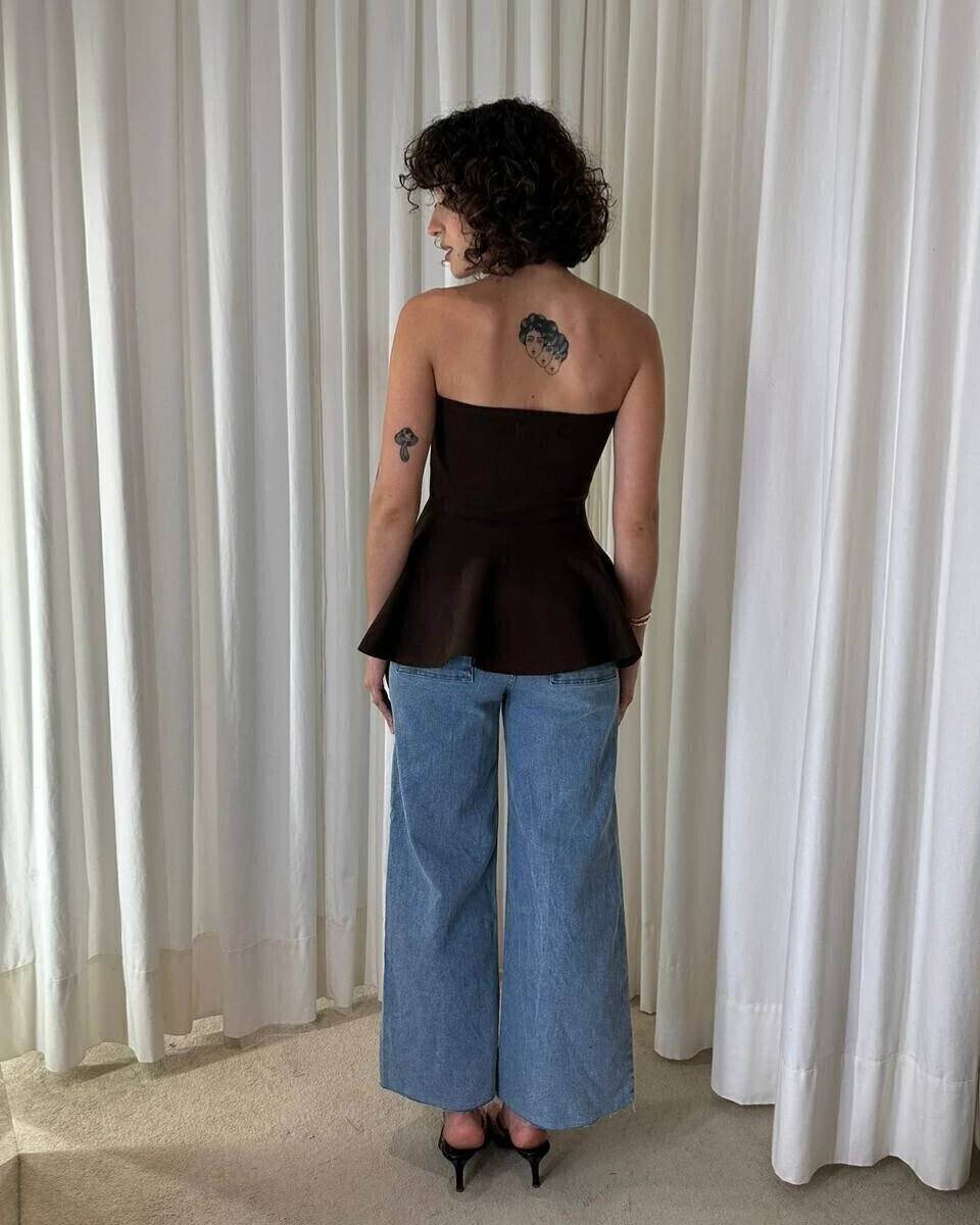 A Blusa Spencer é a peça perfeita para quem busca um look moderno, feminino e marcante. Com modelagem tomara que caia estruturada, ela abraça o corpo com firmeza e desenha a silhueta sem apertar. O destaque da peça é a barra peplum fluida, que cria movimento e um efeito super elegante , trazendo um toque de sofisticação instantâneo ao look. Feita em tecido encorpado e maleável, a Spencer combina conforto com acabamento impecável. O tom marrom escuro traz modernidade e versatilidade, funcionando tanto em produções casuais quanto em composições mais elaboradas.