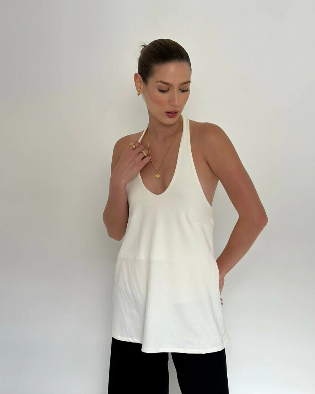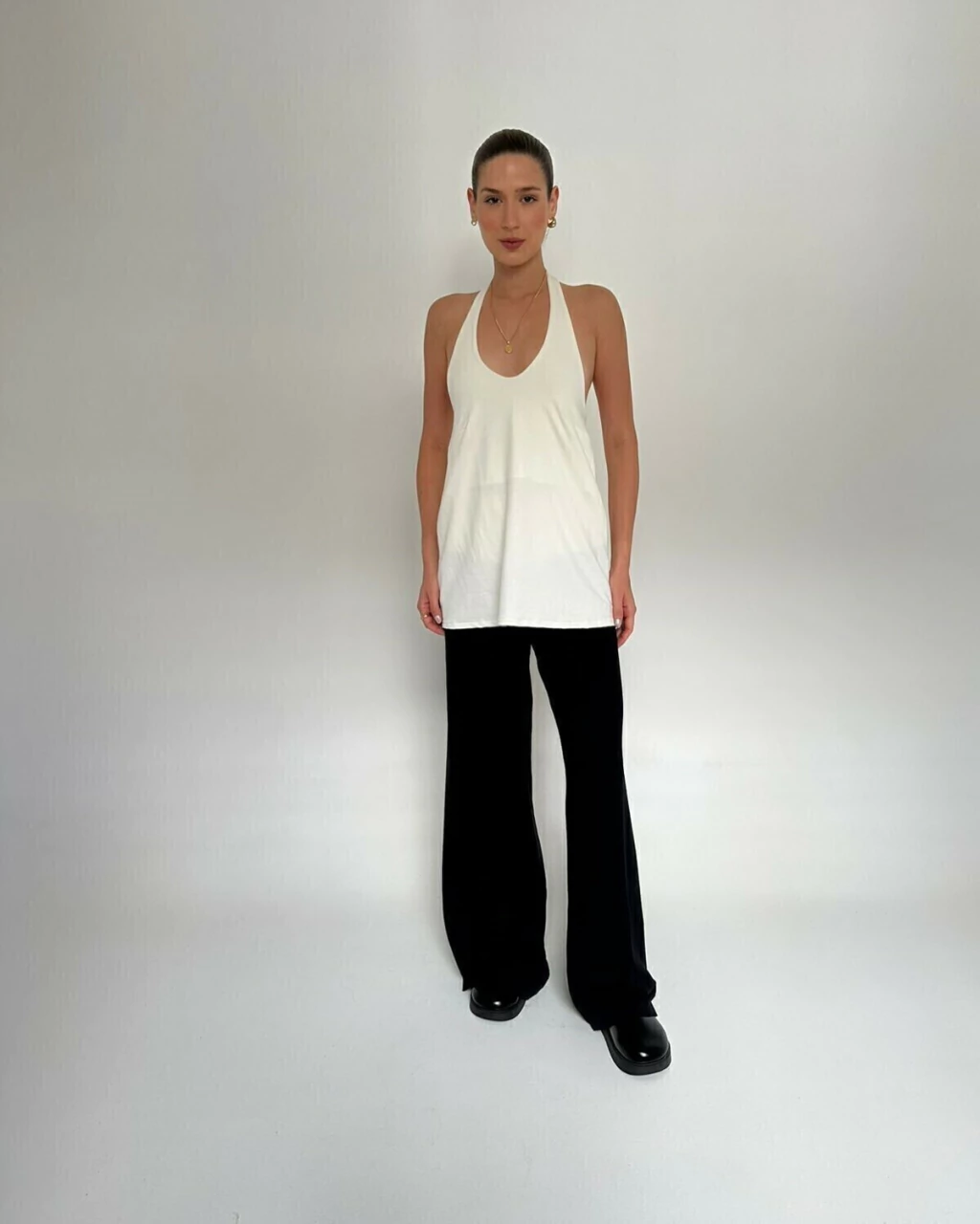 A blusa Tamara é a peça perfeita para unir frescor e sofisticação. Com modelagem alongada e decote halter frente única, valoriza os ombros e garante um visual elegante e despojado ao mesmo tempo. Nas costas, o detalhe aberto com elástico traz conforto e um caimento impecável.