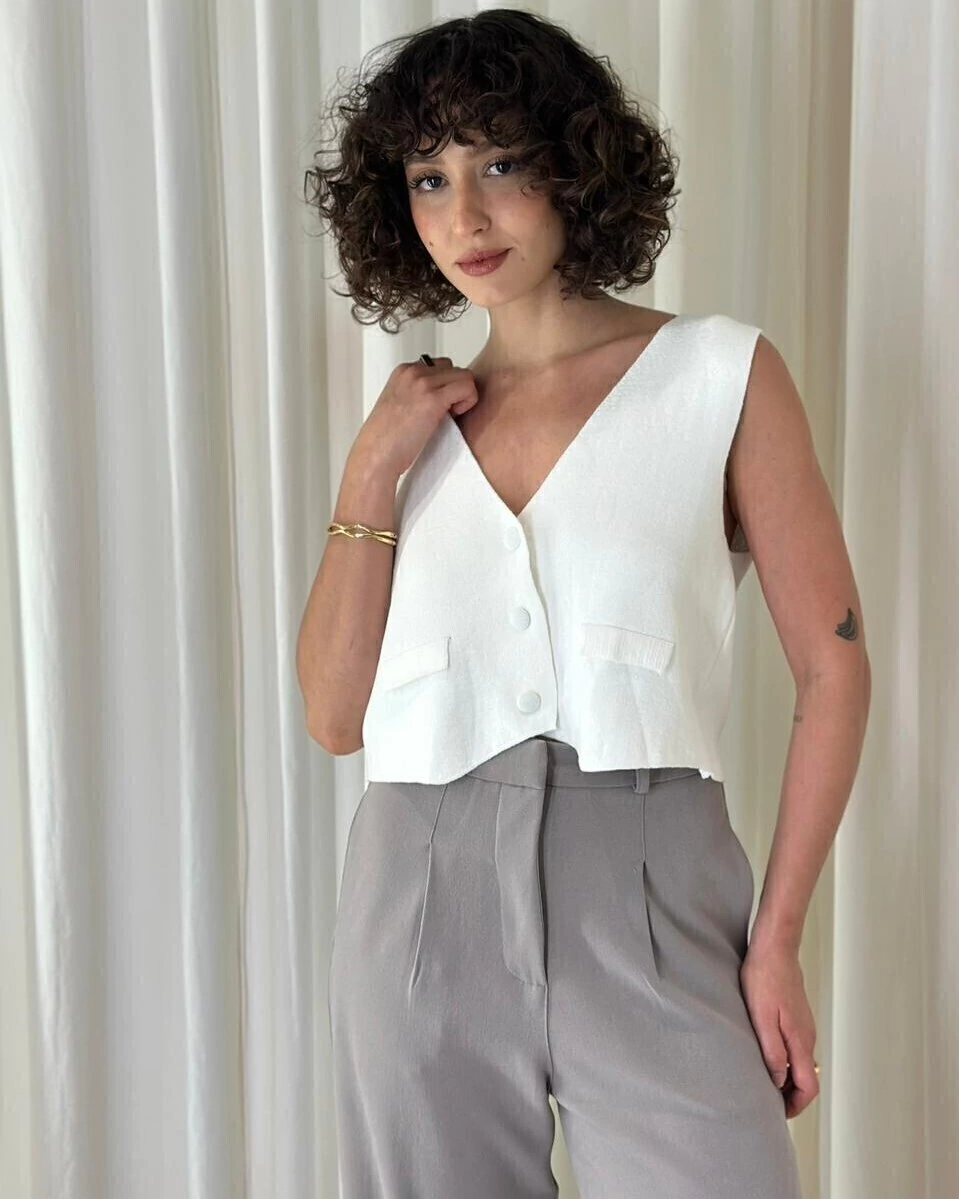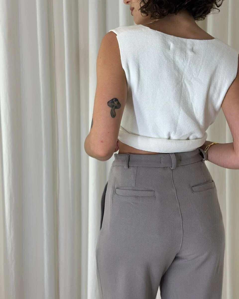 A Calça Beirute é aquela peça de alfaiataria moderna que une caimento impecável, conforto e versatilidade. Com modelagem reta levemente ampla, ela alonga a silhueta e traz um visual elegante sem esforço. O tecido leve possui toque macio e movimento fluido, ideal para quem procura uma calça para usar do trabalho ao dia a dia. A peça conta com pregas frontais, que criam volume na medida e deixam o look mais sofisticado, além de cós estruturado com passantes, o que permite combinar com cintos. Nas costas, possui bolsos embutidos, mantendo o visual limpo e minimalista. O tom cinza é neutro, moderno e combina com absolutamente tudo.