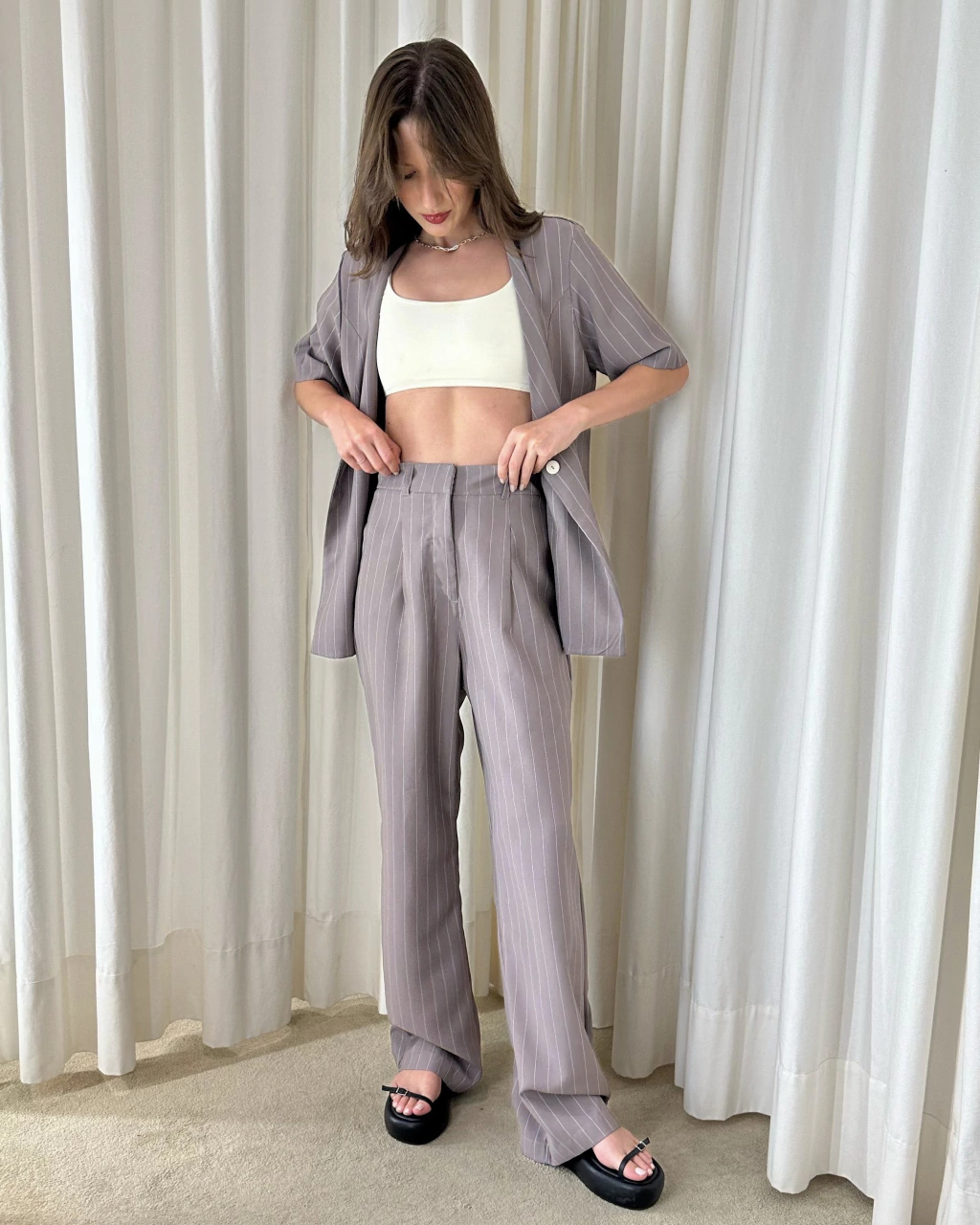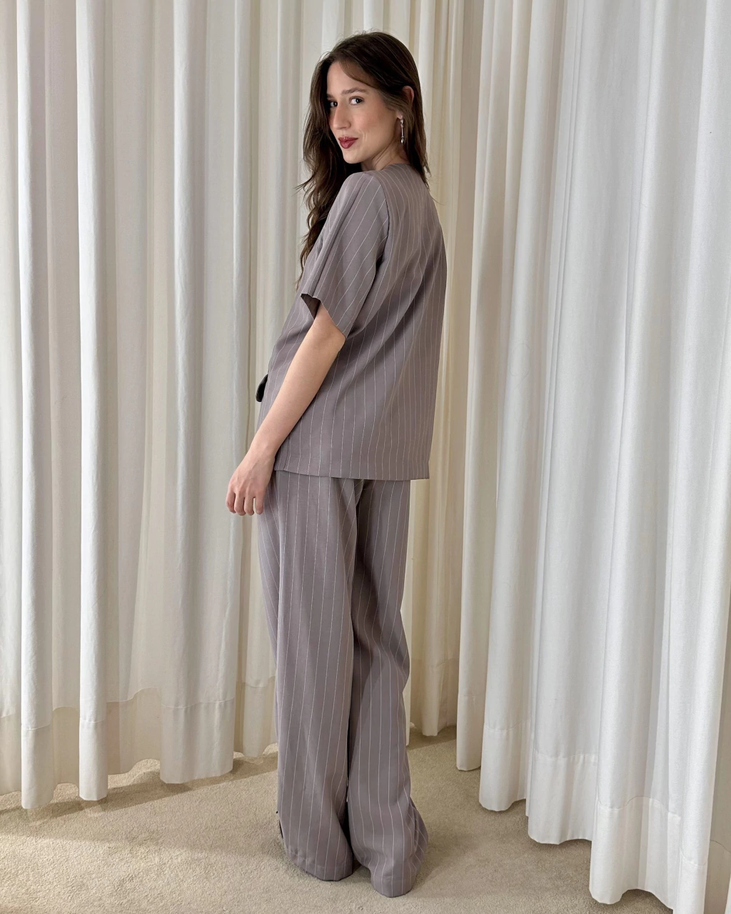 CALÇA BEIRUTE CINZA RISCA DE GIZ