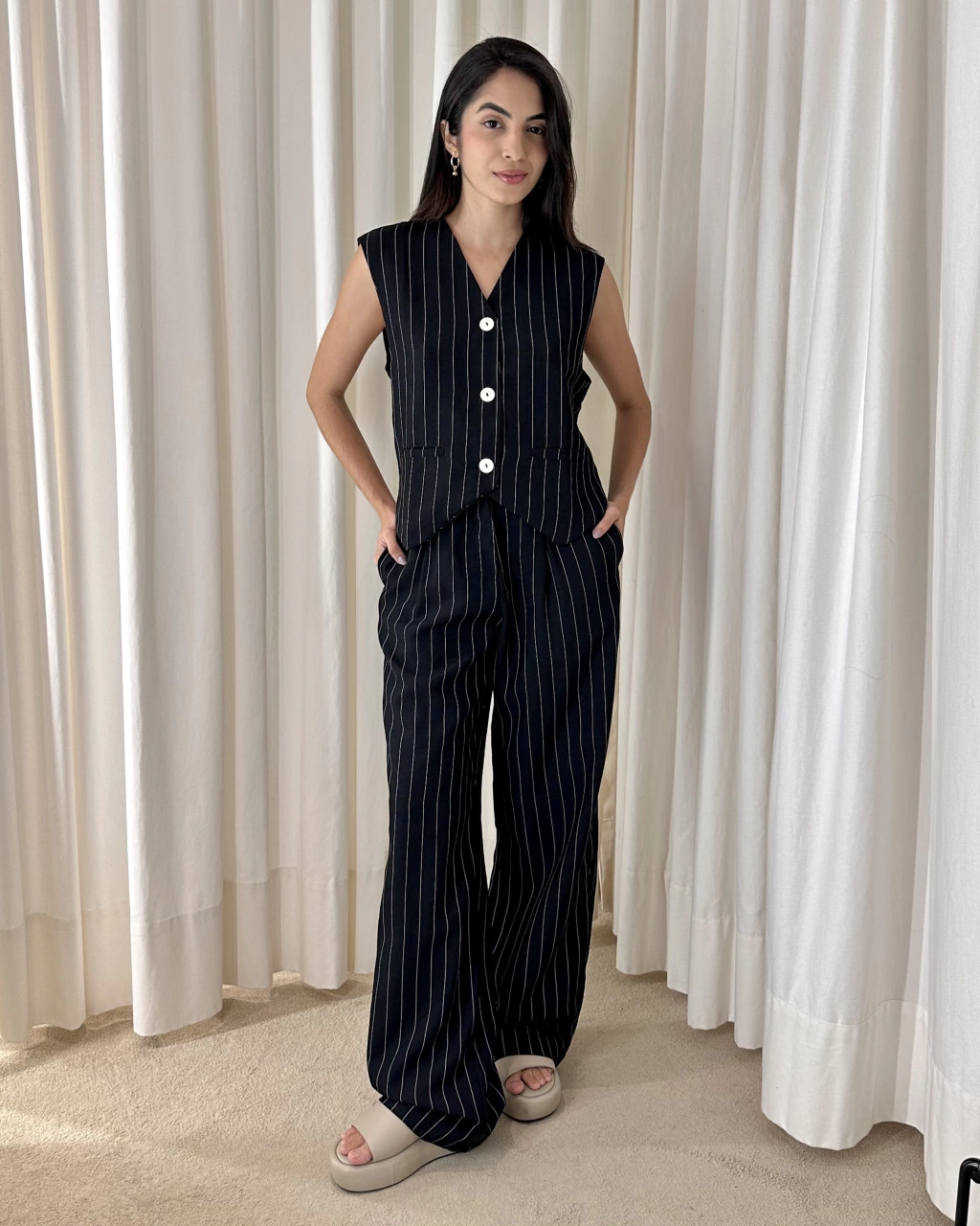 CALÇA BEIRUTE PRETO RISCA DE GIZ