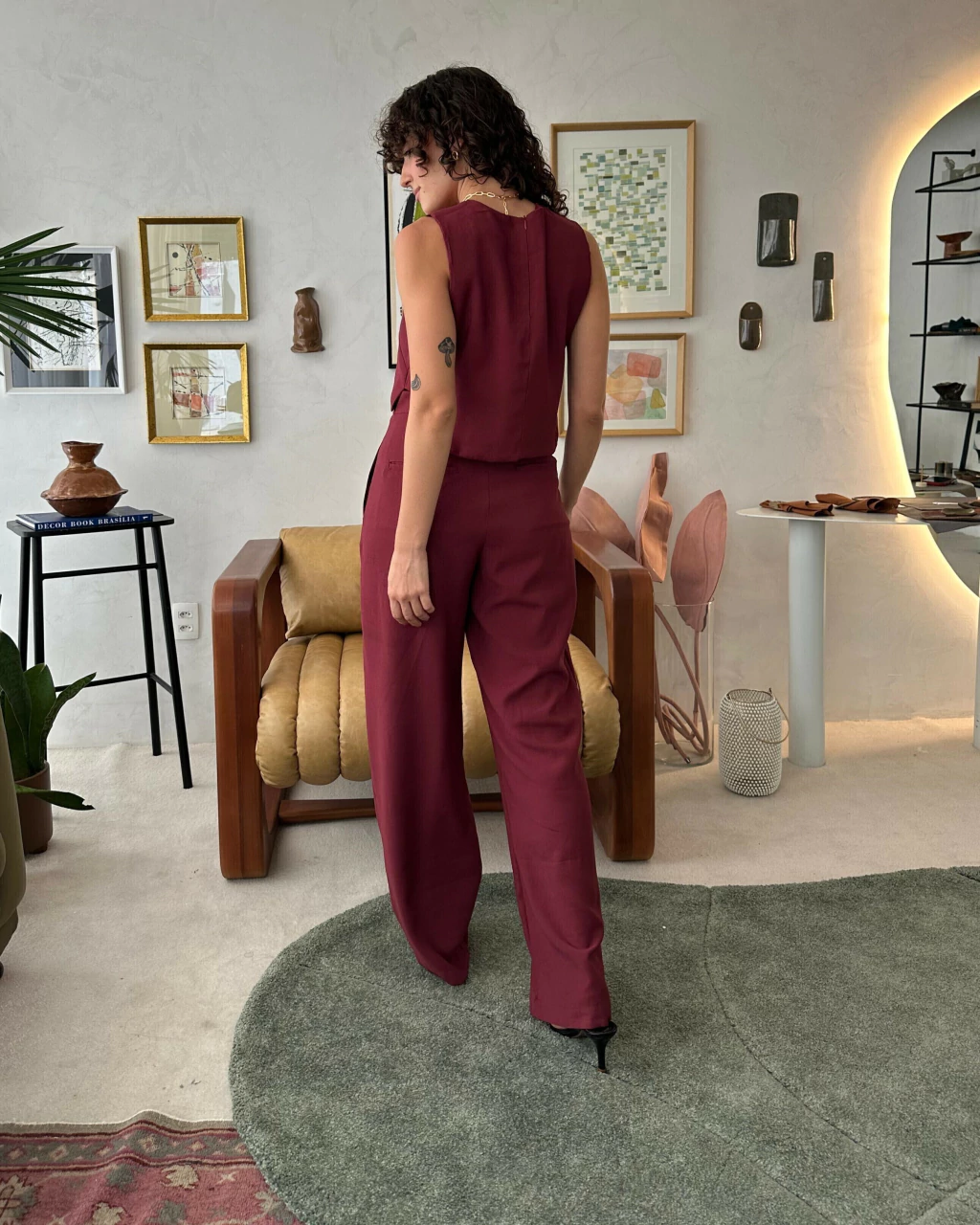 A Calça Beirute é feita em tecido leve e de caimento fluido, perfeita para compor looks elegantes com um toque descomplicado. Com cintura alta, modelagem ampla e pregas frontais, ela valoriza a silhueta e garante movimento e sofisticação ao visual. O tom vinho profundo traz modernidade e versatilidade — ideal para quem busca sair do óbvio com estilo.