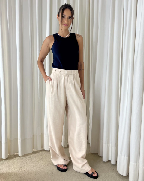 A calça Martin em crepe (92% viscose, 8% poliester), possui bolsos faca e posteriores, pregas frontais, shape wide leg. A nossa calça alfaiataria é um best sellers. Versátil, ela é perfeita para compor looks clássicos e modernos.