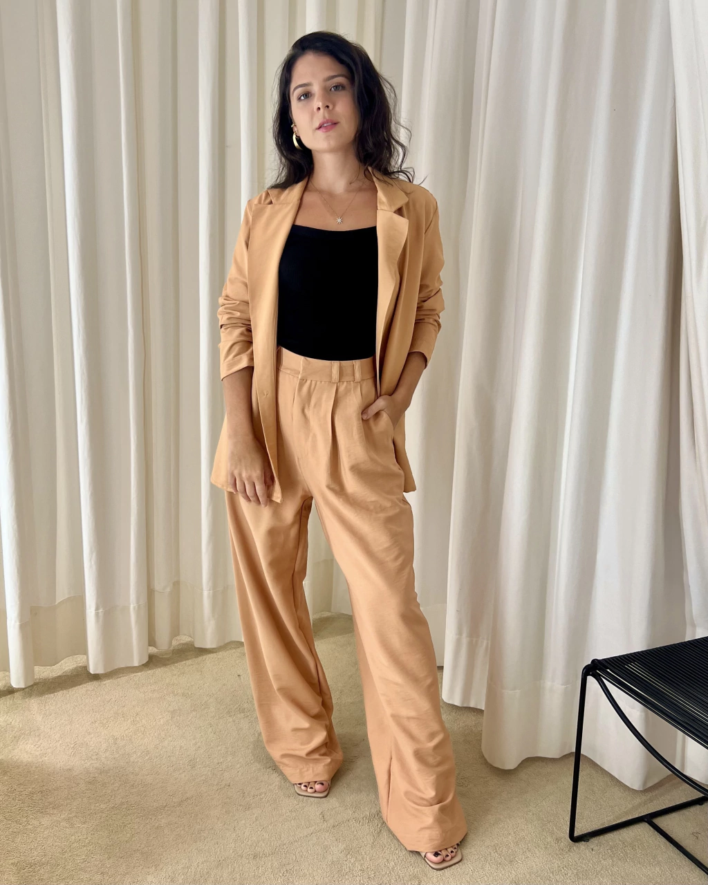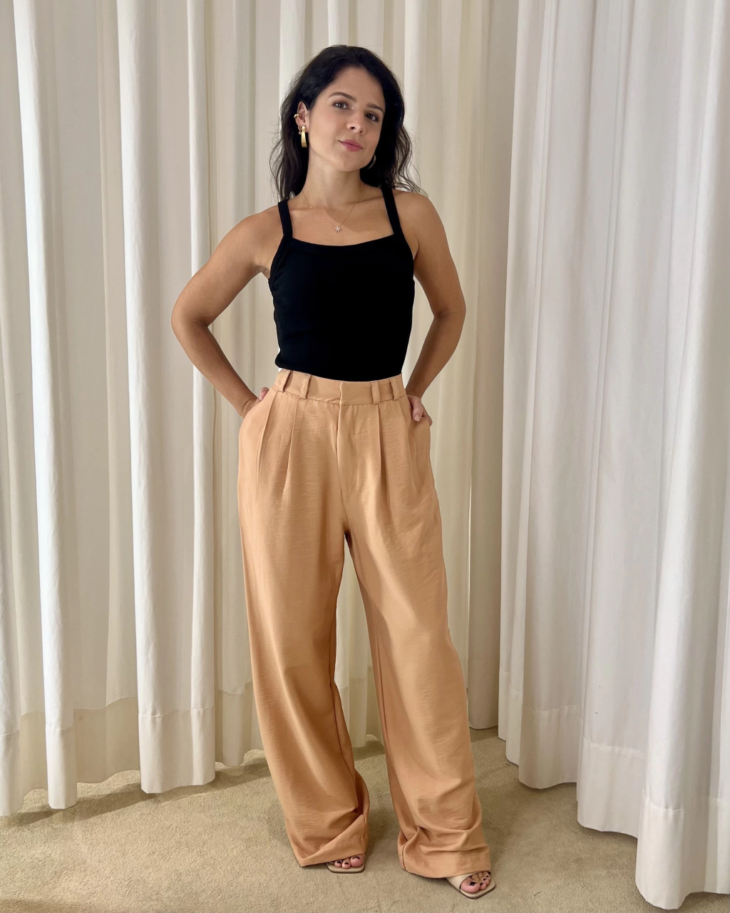 A calça Martin em crepe (92% viscose, 8% poliester), possui bolsos faca e posteriores, pregas frontais, shape wide leg. A nossa calça alfaiataria é um best sellers. Versátil, ela é perfeita para compor looks clássicos e modernos.
