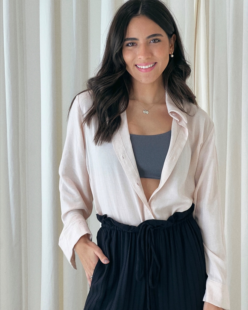Camisa em tecido plano (92% viscose 8% poliéster) com caimento leve, confortável e sofisticado. Possui shape com perfeito equílibrio entre o oversized e o acinturado. Detalhes como gola e punho desenvolvidos em larguras maiores que as camisas padrão para trazer moderninade à camisaria clássica.