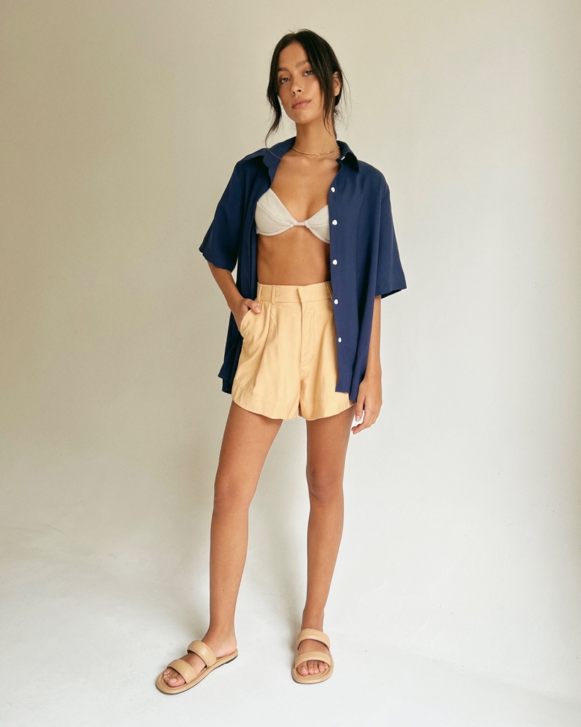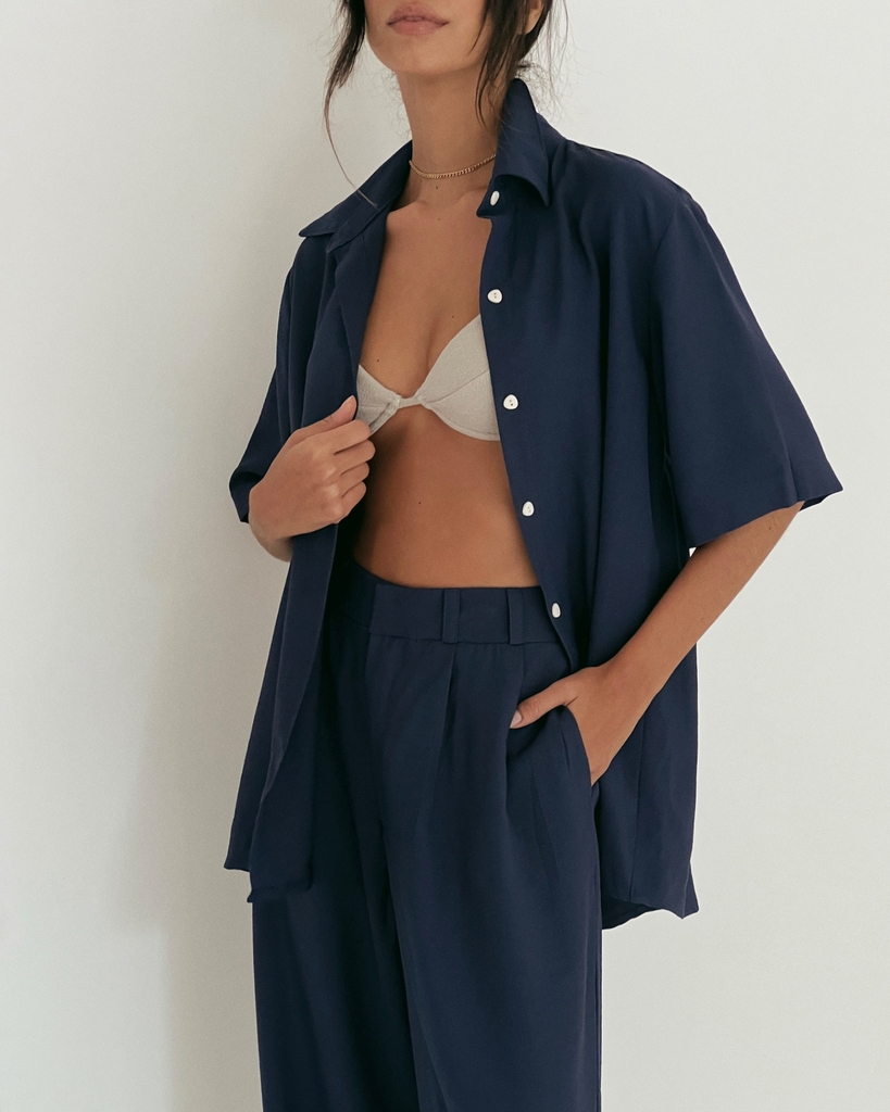 O nosso best seller em uma cor coringa, versátil e moderna. A camisa Arles tem shape oversized, confeccionada em crepe bem estruturado (90% viscose 10% poliéster) com fechamento frontal em botões off white.