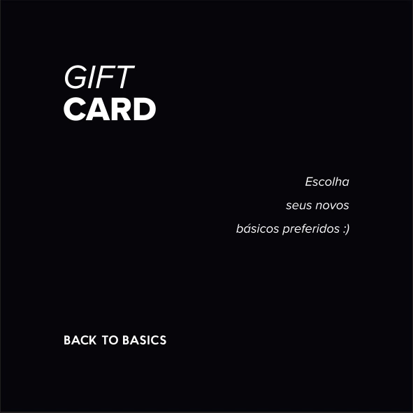 O nosso gift card pode ser usado na nossa loja física e on-line, tem duração de 90 dias e ainda permite aquela pessoa especial ganhar a peça Back to Basics que tanto deseja.