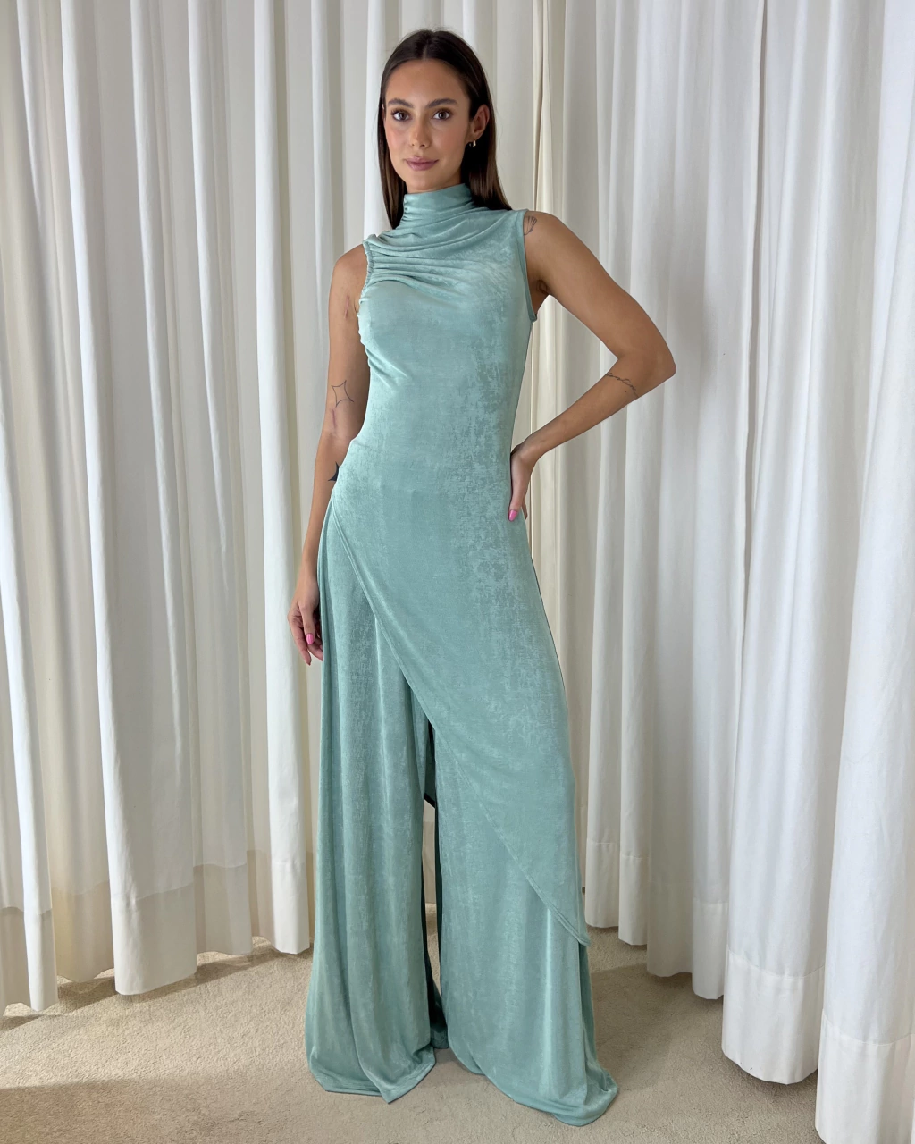 Calça pantalona com shape amplo e cós de elástico em tecido flúido de malha Jersey (92% poliéster 8% elastano).