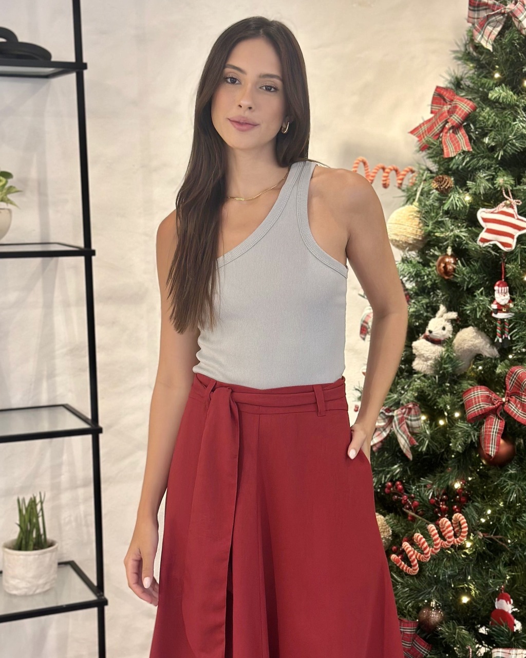Uma peça básica com personalidade. Com modelagem ajustada e decote assimétrico, a Regata Joy é confeccionada em malha canelada com toque macio e caimento que valoriza a silhueta. O design de um ombro só traz modernidade e destaque ao visual, ideal para compor looks descomplicados e cheios de estilo.
