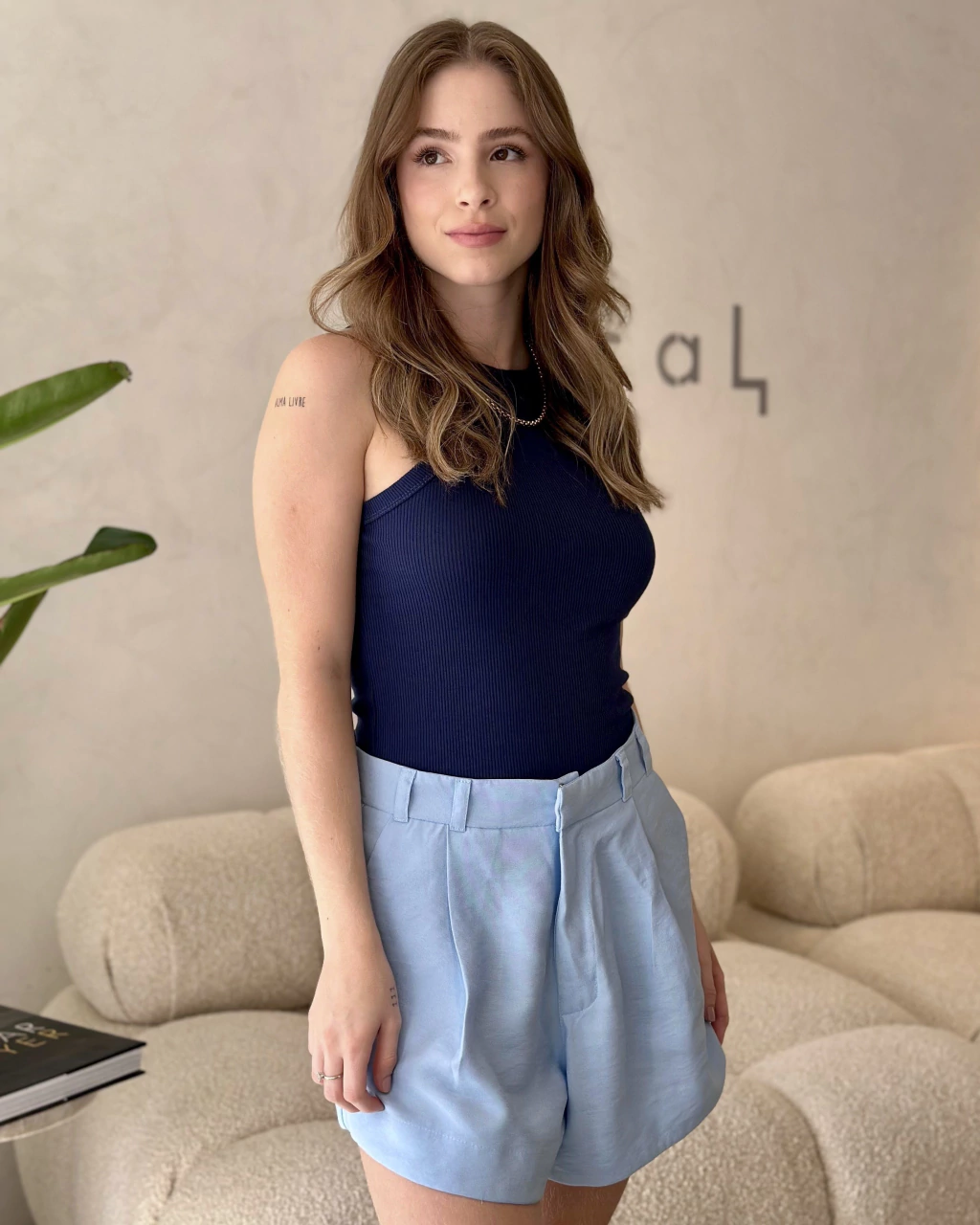 Básica, mas nada óbvia. A Regata Klum traz um shape ajustado com tecido canelado e elasticidade na medida certa para valorizar o corpo com conforto. A gola levemente mais alta e o acabamento nas cavas dão um toque moderno à peça.Versátil, ela transita do look casual com jeans à produção mais sofisticada com alfaiataria e acessórios.
