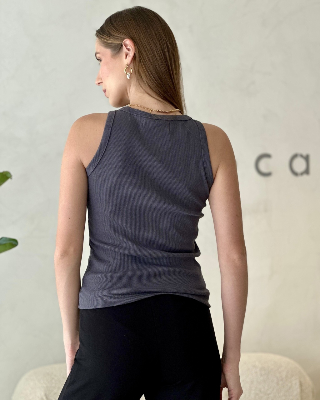 Básica, mas nada óbvia. A Regata Klum traz um shape ajustado com tecido canelado e elasticidade na medida certa para valorizar o corpo com conforto. A gola levemente mais alta e o acabamento nas cavas dão um toque moderno à peça.Versátil, ela transita do look casual com jeans à produção mais sofisticada com alfaiataria e acessórios.