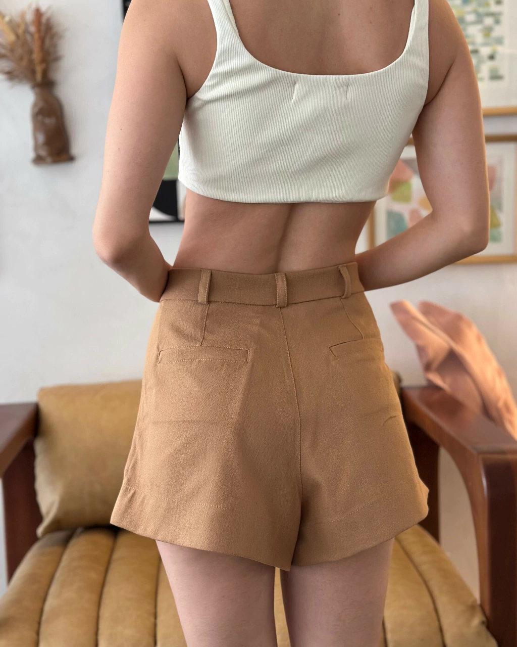 Short Beirute é a peça-chave para looks leves e elegantes nos dias quentes. Com cintura alta, caimento fluido e pregas frontais, valoriza a silhueta com conforto e sofisticação. Possui passantes, bolsos posteriores decorativos e fechamento frontal discreto.Versátil, ele transita do casual ao chic.