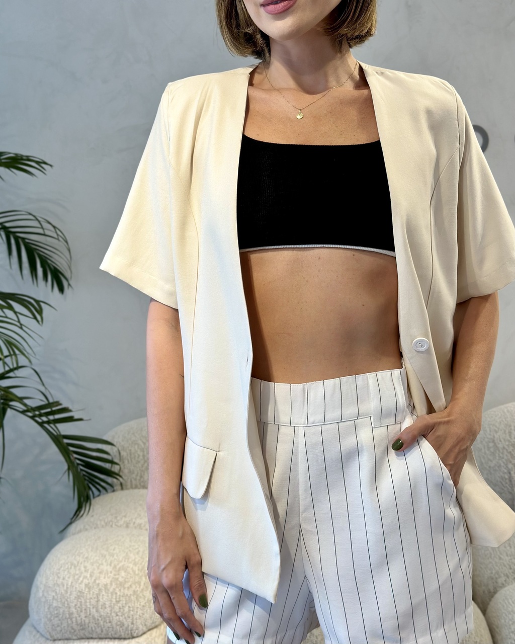Short com bolsos frontais, fechamento lateral com zíper invisível. O Lumi tem comprimento mais curto, modelagem justa ao corpo na cintura e solta no quadril e pernas. Uma peça com a cor perfeita para dias de sol!