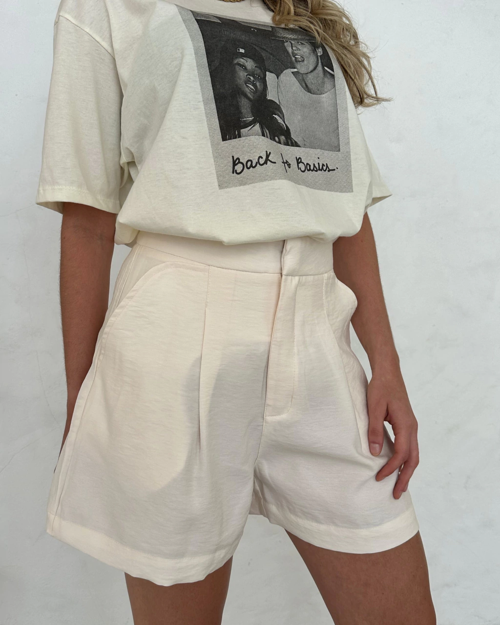 Short com pregas frontais, bolsos laterais, fechamento frontal com colchete e zíper invisível. Comprimento médio, modelagem justa na cintura e solta no quadril e pernas. Uma peça com a cor perfeita para dias de sol!