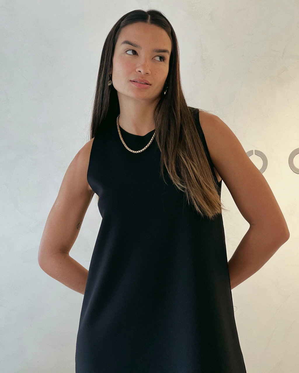 BEST-SELLER: Vestido em neoprene (100% poliéster) com modelagem ampla e barra assimétrica. Possui shape amplo e minimalista. Dupla face. BEST-SELLER: Vestido em neoprene (100% poliéster) com modelagem ampla e barra assimétrica. Possui shape amplo e minimalista.